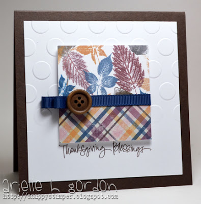 Here's a super quick hybrid card for Thanksgiving! The paper, sentiment & "stamps" are all digital! All I added was ribbon and a button! Digital papers are awesome - you can set up a file & print from it over and over again, just like the papers.